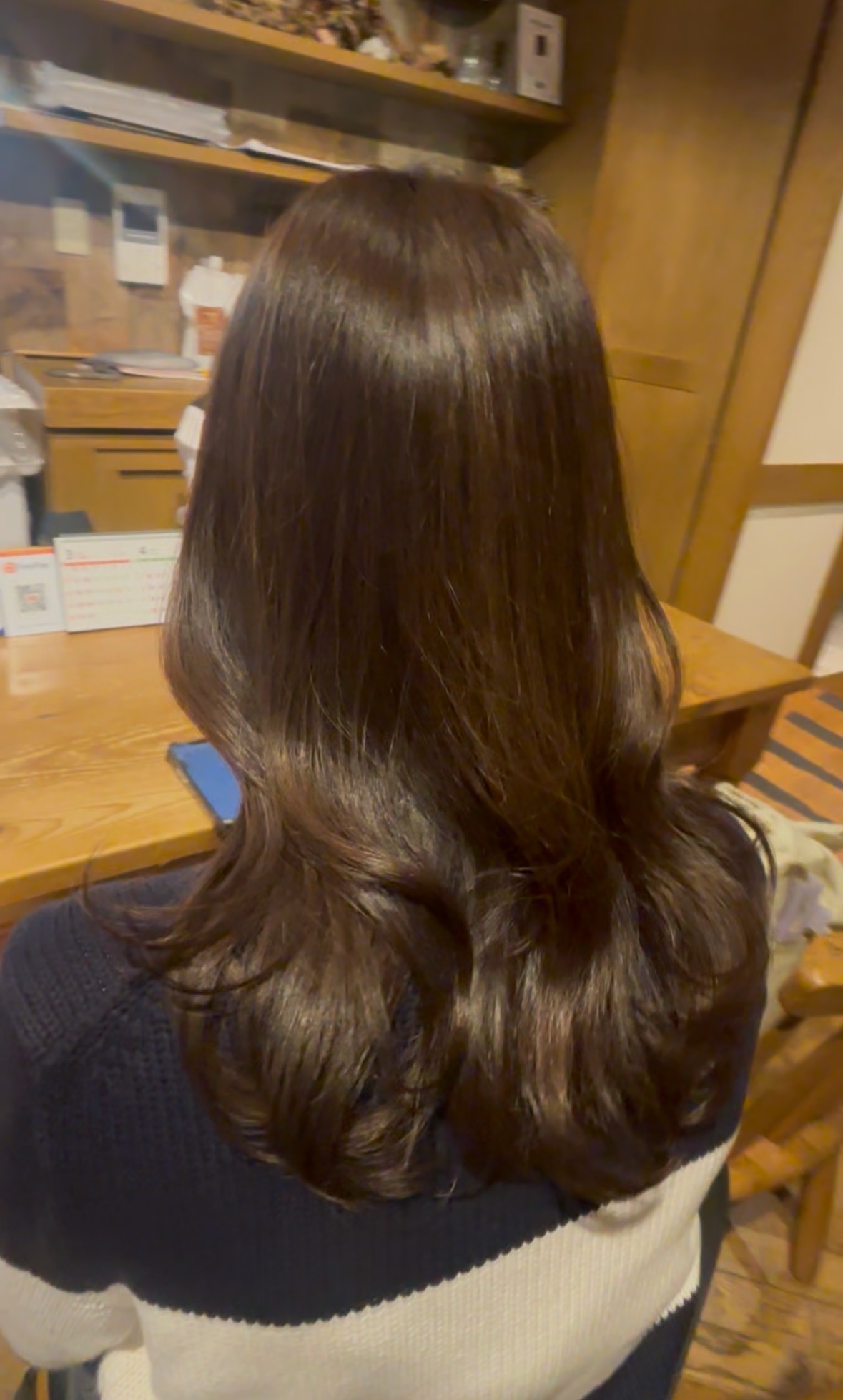 日頃から当店でケアさせていただいているので、全体的に大きなダメージがあるわけではありませんが、毛先に少し乾燥があり、まとまりにくさが出やすい状態でした。